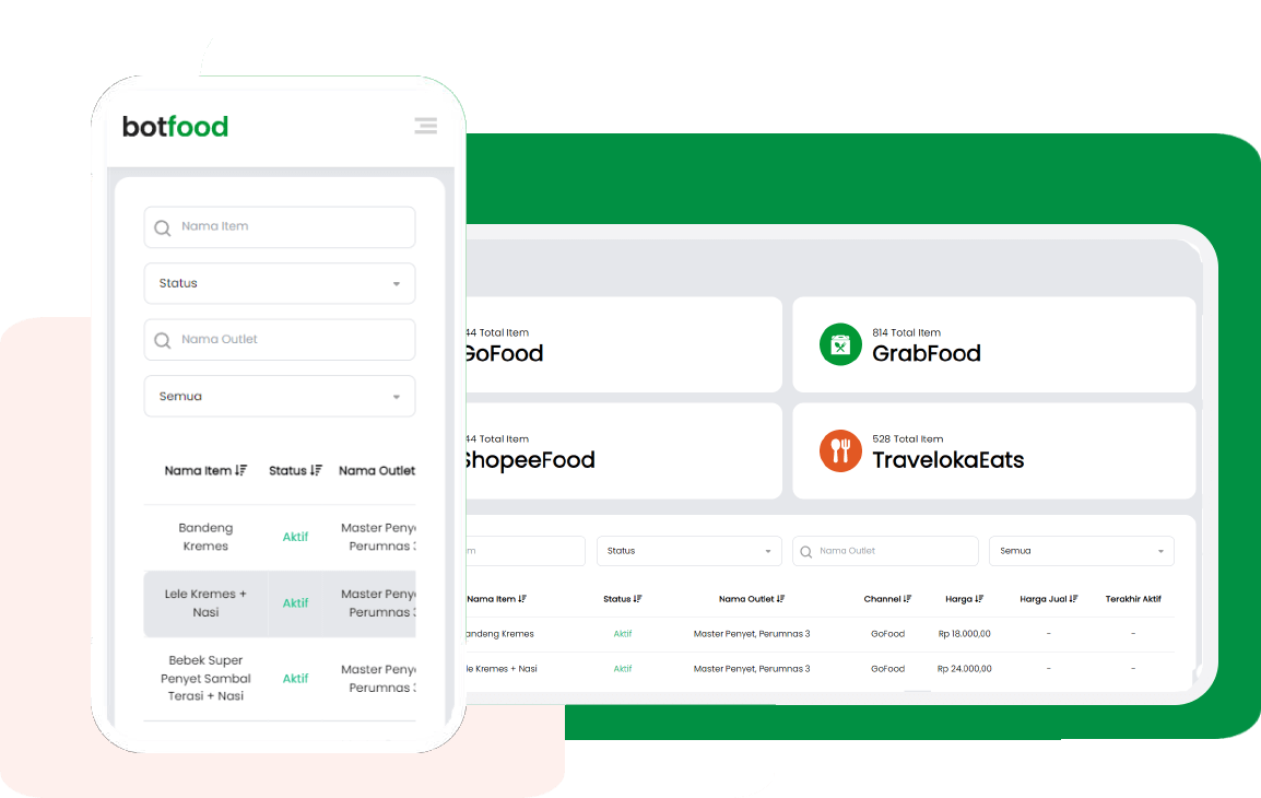 BotFood menjadi alternatif tim operasional anda dalam pengecekan ketersediaan menu di setiap outlet dan channel.